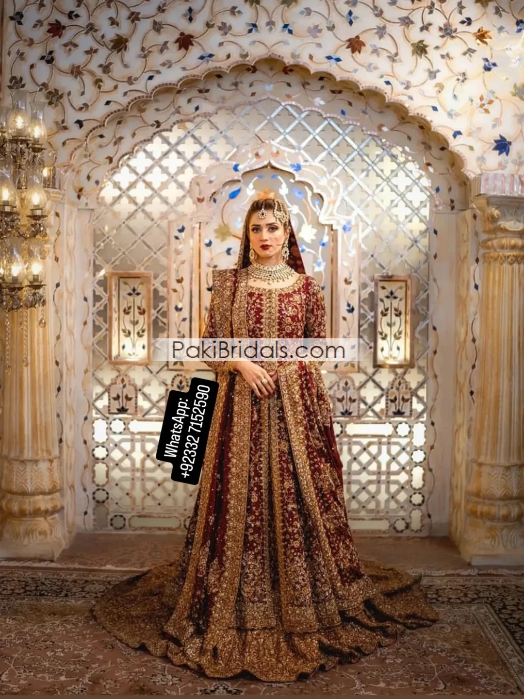 Jannat Mirza Maroon Bridal Gown 836 – Pakistan Bridal Dresses